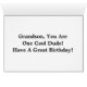Cool picture of smiling cartoon teen with stars and the words, Happy Birthday, is featured on this birthday card to a grandson. Inside of card reads, "Grandson, You Are One Cool Dude! Have A Great Birthday!". A awesome way to send those special birthday greetings!