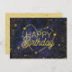 Custom birthday card featuring "Happy Birthday" in mixed typography framed with gold stars, shooting stars, and heart constellation. Several sizes available. Also available for instant download to send and share.