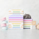 Simple minimalist design of 'Happy Birthday' in the centre inside white circle with pastel rainbow stripes pattern, personalize this with your own text. Perfect modern gift or anyone, LGBTQ friendly gift and memorabilia.