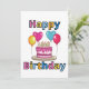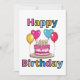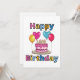 This invitation showcase the words "Happy Birthday" in a bold print font with different colour letters black outline featuring a birthday cake with candles and balloons in this birthday theme and style. Printed on a classic, all around paper 17.5 pt thickness with an uncoated matte finish with an eggshell texture made and printed in the USA with "Happy Birthday" printed on the back.