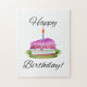 An illustrated slice of birthday cake with a candle and the text Happy Birthday!