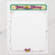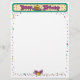 This letterhead features a Happy Birthday banner with a piece of cake at the top, a present at the bottom and a colourful confetti border.