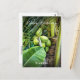 Happy Birthday Men Coconuts Trees Tropical Custom Postcard has Tropical Caribbean Virgin Islands green jelly coconuts that are ready to pick and drink. And if you look a little closer you might see a lizard exploring nature. Replace information with yours and give to that special person in your life. photo copyright Denise Bennerson photographer