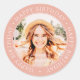 Happy Birthday Modern Simple Custom Photo Classic Round Sticker