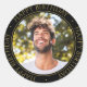 Happy Birthday Modern Simple Elegant Photo Gold Classic Round Sticker