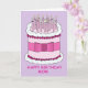 A large cartoon birthday cake set against a mauve background, with the words 'Happy Birthday Mom'.