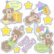 These are cute Happy Birthday stickers that feature a little brown monkey celebrating your child's birthday! Four different monkey stickers are included, with customizable text on each one of them. Along with the monkeys are gold stars, balloons, gift packages, and text that says "Happy Birthday". Cute for any young child's birthday. *Design credit to Scrap Images.