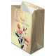 Happy Birthday, Name, Flowers on Gold Medium Gift Bag