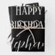 Happy Birthday Name Monogram Gold Black White Wrapping Paper Sheet