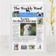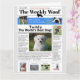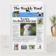 What a lovely card for any dog lover out there: This Newspaper Headline card is fully customisable to change the name and main photo for 'The World's Best Dog' front page headline with funny interview with your dog on the cover. Also change the date to that of someone's Birthday, Anniversary or their dog's birthday to make it extra special! Change or remove the paw logos and background colour too. Play around with it and have fun to make it just the way you like. Available in 3 sizes.