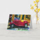 A beautifully restored antique collector car, parked beside historic downtown storefronts with brick and picture windows. Bright and vivid colour oil painting effect. Customize to suit any occasion, perfect for the car buff or retired folks who remember these beauties!