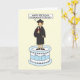 A simple illustration of a young woman wearing a graduation outfit as she stands on top of a giant cake. The lady is saying 'Happy Birthday on Graduation Day'. The image is set against a lemon colored background.
