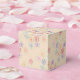 Stylish little paper flowered favour box, modern print, the purple happy birthday text can be personalized to any special message, including, corporate events, wedding or birthday celebrations, or text and banner are removable. A pretty little designer guest paper favour box.