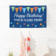 Custom Happy Birthday party banner with colourful bunting flags garland and confetti dots. Add your own name. Cheerful design with elegant typography template. Perfect for kids, friends, family, co worker, boss, husband, wife, dad, mom, teacher, colleague, nurse, employees, grandpa, grandma, children, business owner, etc. Personalized decorations for festive party. Also nice for anniversary, new year's even, corporate party, wedding or retirement celebration. Customizable colours.