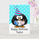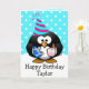 This cute, funny, unique design has a cartoon penguin holding a birthday gift and birthday cake, wearing a cute birthday hat with a colourful polka dot background on the front with the words, "Happy Birthday Taylor". And the words, "I hope that when today is all done, you can say that your birthday was fun!" on the inside. You can customize this item by changing the front text to whatever you like. What a cute personalized birthday card. Created by Karen Hall based on edited public domain artwork. If you need additional help with customizing this product or any other product in this store, please email me at ybnormalone@gmail.com. Please see our matching gift bags, wrapping paper, tissue paper, postage stamps, and gifts. Thanks for stopping by.