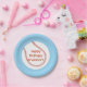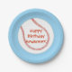 Painting of a baseball, with a placeholder for a name, and Happy Birthday, is printed on custom paper plates.