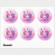 Happy Birthday Pink and Purple Axolotl Classic Round Sticker
