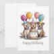 Cute illustrations of American Pit Bull Terrier dogs celebrating a birthday celebration. Perfect for pet lovers and dog parent.