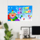 Happy Birthday with clown balloons and other colourful balloons poster.