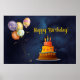 Happy Birthday with balloons and cake poster.