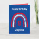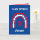 Rainbow Birthday Card in Red White and Blue. Can be personalized by clicking on the 'Personalize' prompt.