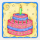 Happy Birthday sticker for 1st (first) birthday or any birthday. This art features a red and blue birthday cake with a green candle. Celebrate a birthday or other occasion with the whimsy cake and cupcake original art that is perfect for both boys and girls as well as adults. The colours are in both softer and more vibrant colours.