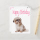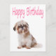 This cute canine Happy Birthday postcard features a tan and white Shih Tzu dog highlighted against a crisp white background. The back of the card is blank for your message.