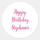Happy Birthday Simple Custom Name Pink Girly Classic Round Sticker