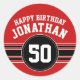 Happy Birthday Sports Stripes with Age - Red Black Classic Round Sticker