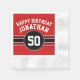 Happy Birthday Sports Stripes with Age - Red Black Napkin