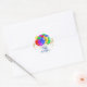 This small size round sticker is shown with a festive Happy Birthday balloons print.