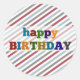 Happy Birthday Stickers Colourful Striped Design with different coloured letters for the word "Happy Birthday".