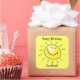 Square sticker to match our "Happy Birthday Sunshine" invitation with an image of a smiling yellow sun and the optional sentiment “Happy Birthday, Sunshine!" on yellow. See matching custom-cut vinyl sticker, card, envelope, favour bag, favour box, favour tag and label. See the entire Birthday Sticker collection in the INVITES | Stickers & Labels section.