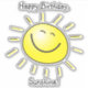 Custom-cut vinyl sticker with an image of a smiling yellow sun on yellow and the sentiment, “Happy Birthday, Sunshine!” See matching favour bag and favour box. See matching square sticker, invitation, envelope, label, favour bag and favour tag. See the entire Birthday Sticker collection in the INVITES | Stickers & Labels section.