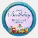 Happy Birthday Train With Cute Animals Wishes Classic Round Sticker