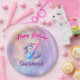These magical unicorn-themed paper plates are perfect for a seventh birthday celebration. Featuring a cute unicorn with a colourful mane and tail, the design is set against a dreamy pastel background, sprinkled with shimmering glitter. The personalized name and number "7" make these plates unique and extra special for the birthday girl. They're not just plates; they're a way to transform your party into a whimsical wonderland. Create unforgettable memories with these beautiful and practical paper plates, ensuring a magical birthday experience for everyone.