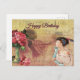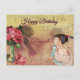 Happy Birthday Vintage Lady with Roses Postcard