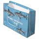 Happy Birthday Whimsical Blue Ocean Sharks Fun Large Gift Bag