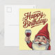 "Happy Birthday" Wine-Toasting Gnome Holiday Postcard