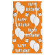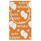 A small gift bag with a Happy Birthday and Balloons on an orange background. Customize the orange background, pattern size among other options.