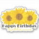 Three yellow sunflowers with text "Happy Birthday!" in retro font and custom name in script.