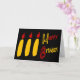 This "Happy Birthday" card has three lit candles on a black background. The candles and flames are stylized and the text is in a fun, casual, and funky font. The inside text is "No one can hold a candle to you!" It can be customized so that you can also use your own message inside or leave it blank.