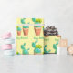 This southwest style wrapping paper design features three potted cactus plants two with yellow flowers. The happy birthday celebration text message can be changed in the template field to anything or removed.