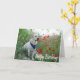 Brighten someone's day with a Labrador greeting. This fun canine birthday card features a beautiful yellow Labrador wearing a blue handkerchief sitting in a woodsy field of red wildflowers.