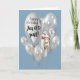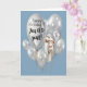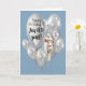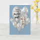 “Happy Birthday!!! You old goat!” in black lettering, an illustration of an old goat with a melancholy expression on his face on one balloon. The goat is surrounded by a bunch of silver grey balloons. A very funny greeting card for someone special. The inside of card is blank and in white.