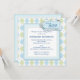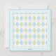 Leave no doubt that a sweet baby boy is on the way with this cute blue, green, and white coordinated argyle and circle patterned shower invitation that features a fun little gift tag effect with the big news!
