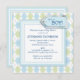 N'oubliez pas qu'un petit bébé sucré est en route avec ce joli Jacquard coordonné bleu, vert et blanc et une invitation à la douche à motifs circulaires qui a un drôle de petit effet cadeau avec la grande nouvelle!