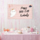 This personalized Halloween birthday banner is the perfect backdrop for BOO Day parties, kids’ birthdays, and October celebrations. The design features a smiling pastel ghost with a bow on a pink striped background, accented with a playful spider and hanging stars. With cheerful spooky-cute style and the option to add a name, this banner makes any party space feel fun, festive, and extra special.