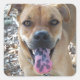 This intelligent pup is very happy and is showing us his black and pink speckled tongue.