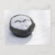 A fresh layer of snow covered a round happy Buddha head sculpture. As the snow melted, it looked like the sculpture was getting a snow facial. The statue's pleasant features show through its snow mask creating an amusing winter scene.